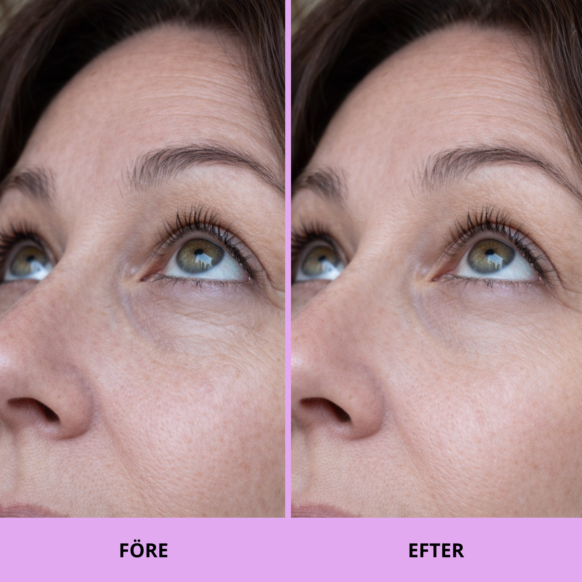 Direkt. Efter 10 minuter ser huden under ögonen mer utvilad och mindre puffig ut – som om du sovit bättre än du faktiskt gjort.